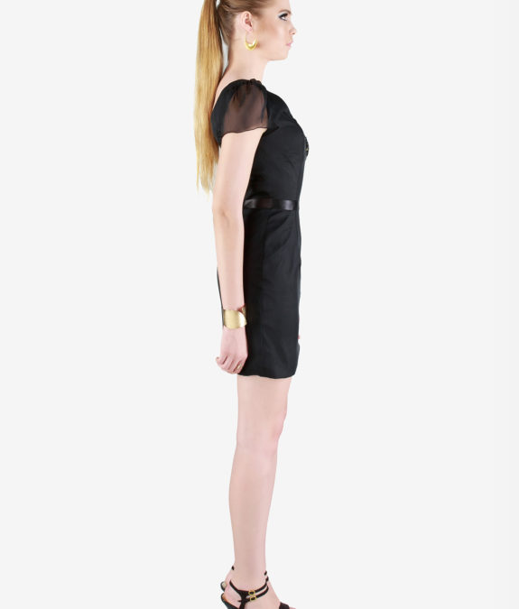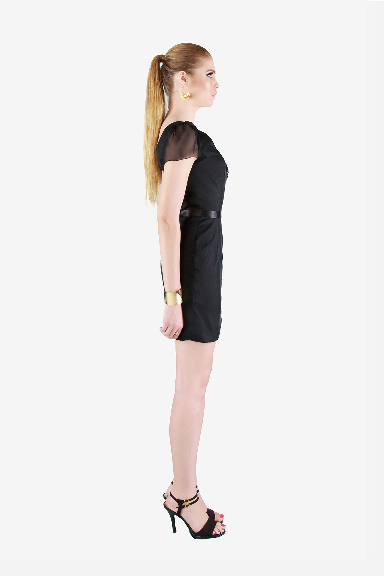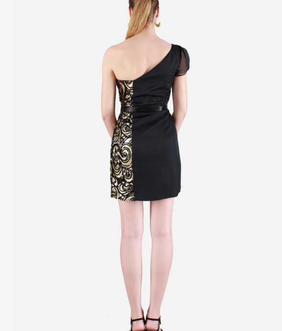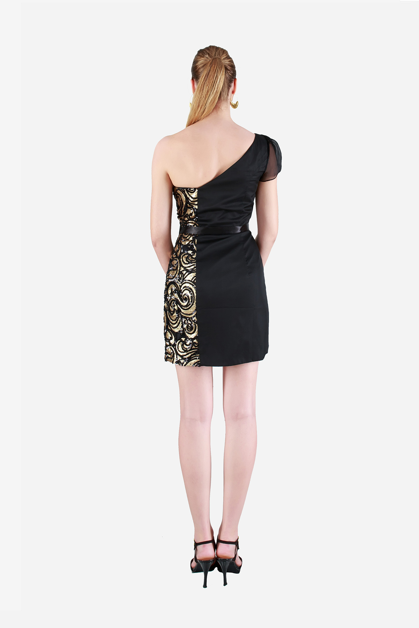 Made with jet black 100% chiffon silk and heavy black and gold sequinned fabric.